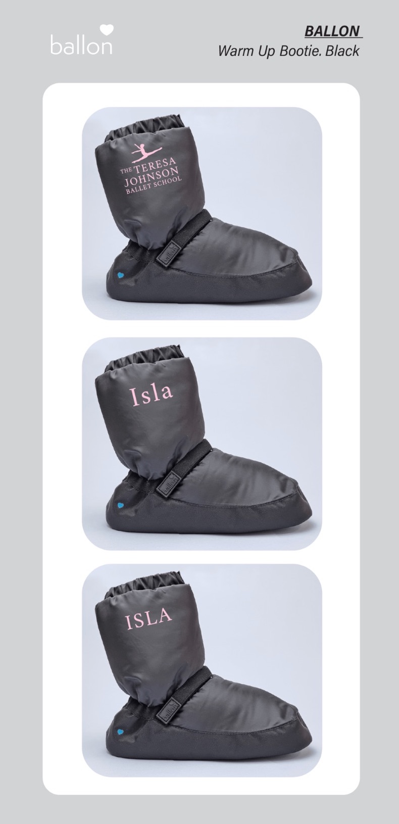 BALLON Padded Rip-Stop Nylon Boots with velcro strip – perfect to keep feet warm between classes.